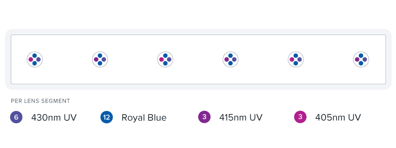 The Blade Glow is uncompromising in a mission to fluoresce coral. Spectral peaks in the lower range of the blue and upper range of the UV spectrum that stimulate coral fluorescence peaks and bring out the otherworldly colors that make an aquarium glow.