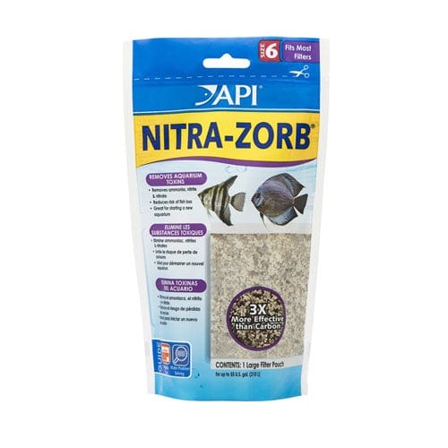 API NITRA-ZORB is a ready-to-use filter media pouch that can be added to your filter to remove ammonia, nitrite, and nitrate. NITRA-ZORB is made of natural and synthetic ion-exchange resins that selectively remove toxins from freshwater aquariums. NITRA-ZORB is completely phosphate-free and can be reused after recharging.