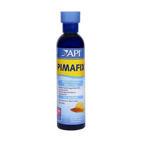 API Pimafix is an all-natural, antifungal remedy for fish fungal infections, with a formula derived from the West Indian Bay Tree – a proven natural antifungal. API Pimafix rapidly treats cottony growth, mouth, body fungus, and the reddening of the fins and body, in addition to both internal and external bacterial infections.