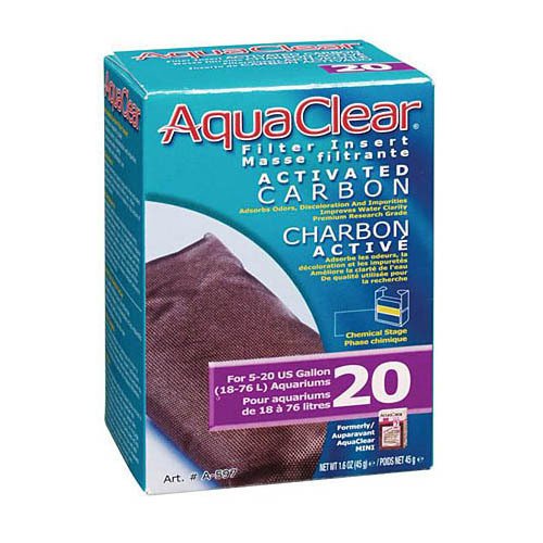 AquaClear 20 Activated Carbon Filter Insert improves water clarity for fresh and saltwater aquariums. Exclusively designed for the AquaClear 20 Power Filter, it provides superior adsorption qualities which eliminate odors, discoloration and impurities.