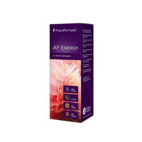 Supplement containing a highly nutritious concentrated feed for all types of corals, especially SPS corals. AF Energy is a unique composition of the most valuable, natural extracts. It contains unsaturated Omega-3 and Omega-6 fatty acids, vitamins and amino acids. AF Energy contains a natural extract from a specially selected zooplankton. By limiting the growth of zooxanthellae, it increases the bright, pastel coloration of SPS corals. AF Energy has been enriched with a copper sulfate, which is needed for proper development and intense coloration of corals. The content of copper sulfate in this product is almost undetectable and completely safe for all marine organisms. Due to the acidic reaction of AF Energy, we recommend using AF Build the same day in order to stabilize pH levels.