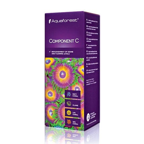 Component C is designed for complementing minor deficiencies of iodine and fluorine in a marine aquarium. Skimmer and filtration media tend to remove trace elements from the water of closed aquarium system, making micro nutrients supplementation necessary. In marine aquariums, iodine is responsible for the general cells functioning and for the transfer of nutrients. Fluorine takes part in the calcification process and supports skeletal tissue development.