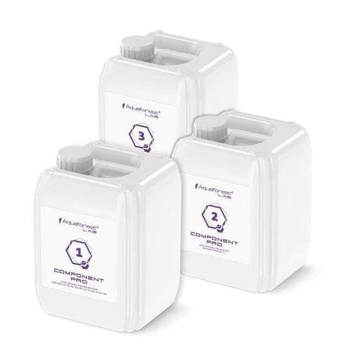 All the fluids should be dosed equally based on Ca, KH and Mg consumption. Regularly test your water and establish the optimal dose basing on analysis results. With average SPS corals stock, the recommended Components Pro dose is 12 ml per 100 liters of water daily. When water parameters aren’t in the recommended range use one of the Aquaforest Lab additives (Ca Plus, Mg Plus, KH Plus) until reaching the desired levels. Component 1 Pro contains: Ca, Sr, Fe, Mn, Cu, Zn, Ni, Cr, Co, Mo (25 ml / 100 l raises Ca by 9 ppm). Component 2 Pro contains: HCO3-, F, I (25 ml / 100 l raises KH by 1.3 dKH – Alk 0.46 meq / l). Component 3 Pro contains: mineral salts, Mg, S, K, B, Sr, Li (25 ml / 100 l increases Mg by 0.76 ppm). Due to the high concentration of the product, we recommend regular maintenance of the dosing lines.