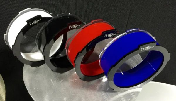 • Custom 1/4″ cast coloured tube along with laser cut 1/4″ cast viewing window and gear trim.