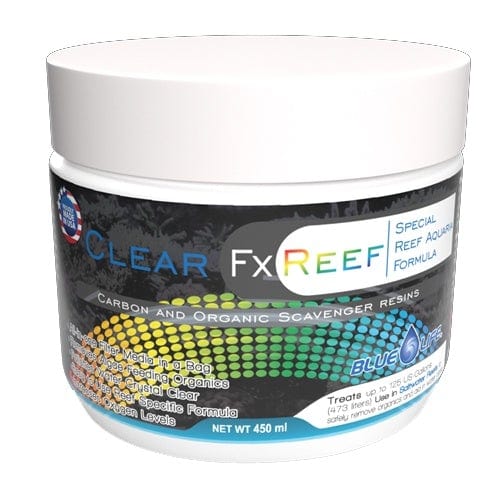 Clear Fx Reef is an advanced comprehensive filter media for Reef Aquariums and is the only filter media needed to ensure the health, clarity, and stability of your Reef Aquarium. This specialized Reef Filtration media uses cutting edge technology that specifically targets and removes organics that nuisance algae feeds on from your Reef. This specialized reef media does not strip important trace elements your Reef needs while polishing the water for crystal clear viewing. Clear Fx Reef raises redox (ORP), increased oxygen is beneficial to fish and coral vibrance and increased activity. New Formula has double the organic scavenger resin to produce clearer water and more algae removing benefits! You will be amazed with the resulting clarity and overall appearance of your aquarium and its inhabitants.