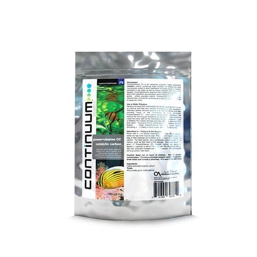 Power•Cleanse CC is an extremely powerful, highly activated catalytic carbon containing huge numbers of mesopores and macropores, suited to direct adsorption of a wide range of organic pollutants in tap water, as well as marine, brackish and freshwater aquaria. It will significantly raise the ORP (unlike standard carbon) and it will outperform any standard carbon because of its catalytic action. Unlike standard carbon, Power•Cleanse CC will also remove toxic chloramine, ammonia and hydrogen sulfide from tap or aquarium water. Power•Cleanse CC is powerful, you don’t need much!