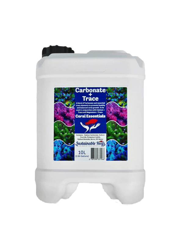 Our Coral Essentials, Carbonate + Trace is a concentrated source of liquid carbonate, 180,000 ppm (mg/L) or 10,000dKH and our own unique blend of trace elements. We have added our Coral Power Trace C elements as well as Boron and Bromide into this mix using our proven Coral Essentials Method dosing regiment. When using Carbonate + Trace there is no need to add additional trace elements.