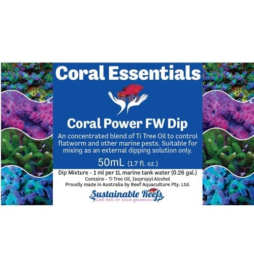 Coral Essentials Coral Power FW Dip is a very effective product to remove flatworm from SPS Coral. It is a blend of Ti Tree oil and isopropyl alcohol that we have found is extremely effective in removing flatworm off all coral types, especially SPS.
