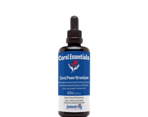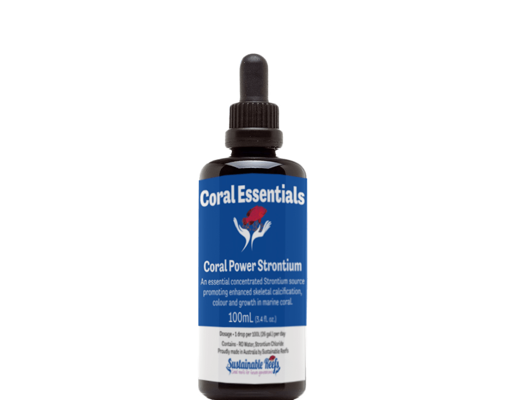 Coral Essentials, Coral Power Strontium is a concentrated solution of strontium (50,000 ppm). Strontium in natural sea water is in the order of 8-10ppm. Keeping strontium at this level is advisable and not outside the range of 5-15ppm. Anecdotal evidence has shown that strontium at below 5ppm in the marine aquarium is detrimental to coral growth. For the advanced aquarist strontium levels in marine tanks should be checked regularly to determine the take up in your system. Calculate strontium usage by testing regularly, then simply calculate dosing requirements to suit the depletion rate. Then continue a check of the strontium levels every week or two.