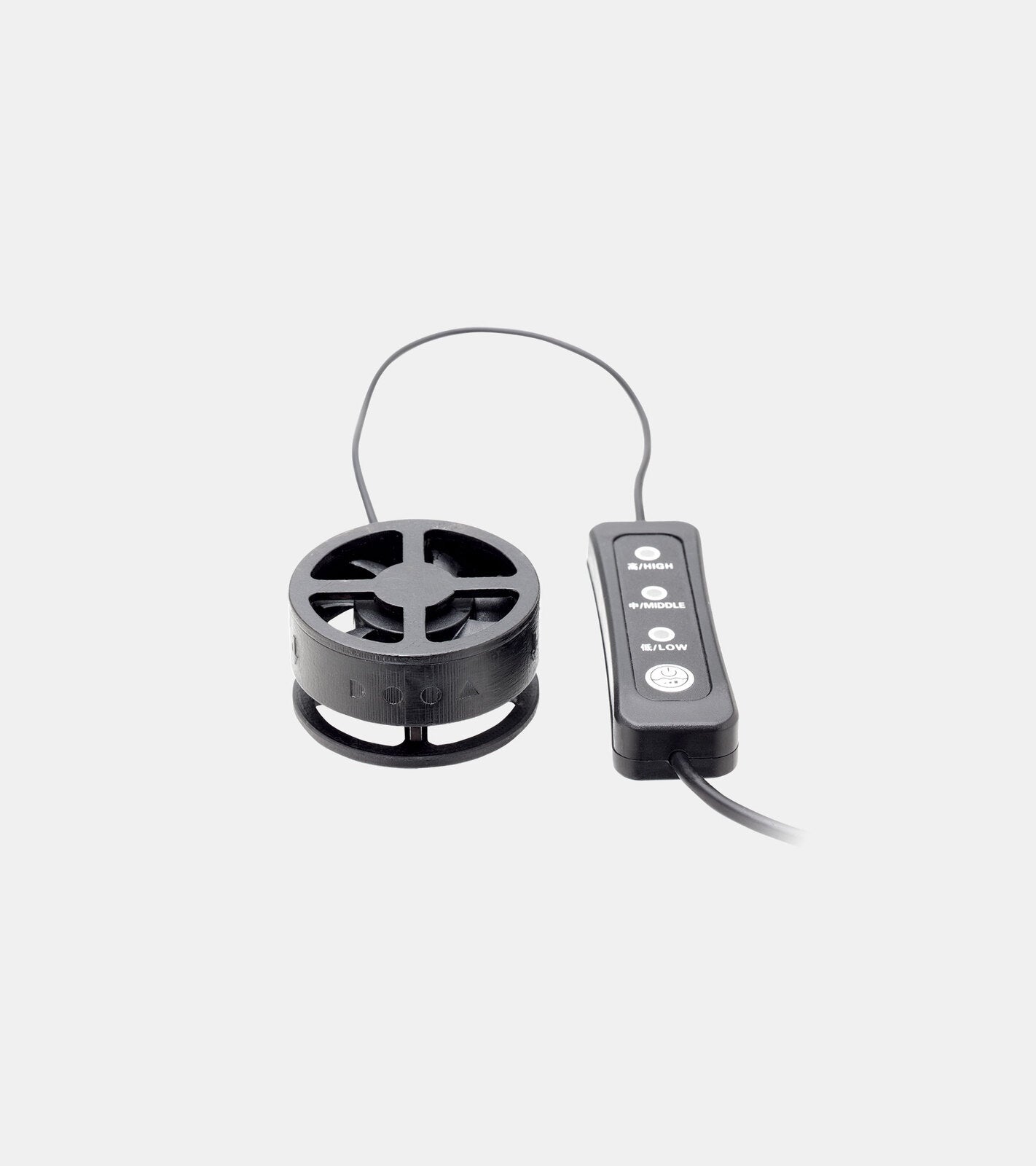 Circulation Fan 40 is a small fan to be installed to System Paluda/Neo Glass Paluda for making the air flow. Sufficient ventilation is necessary for cultivating epiphytic orchids that naturally grow on trees in a tropical rainforest. In Paludarium for growing tropical plants, it is necessary to maintain high humidity. But if just putting a lid and installing a humidifier, the air tends to stagnate. Consequently, it was quite difficult to grow epiphytic orchids. Circulation Fan 40 can be used for both suction and exhaust depending on the mounting direction to System Paluda/Neo Glass Paluda, and the humidity and ventilation appropriate for cultivating tropical plants can be executed. It is drip proof, intended to use in humid environments, and the airflow can be adjusted in 3 stages. By using Power Cord S-70 and having the Circulation Fan 40 operate simultaneously with Mistflow, an environment similar to a tropical cloud forest with flowing mist can be recreated.