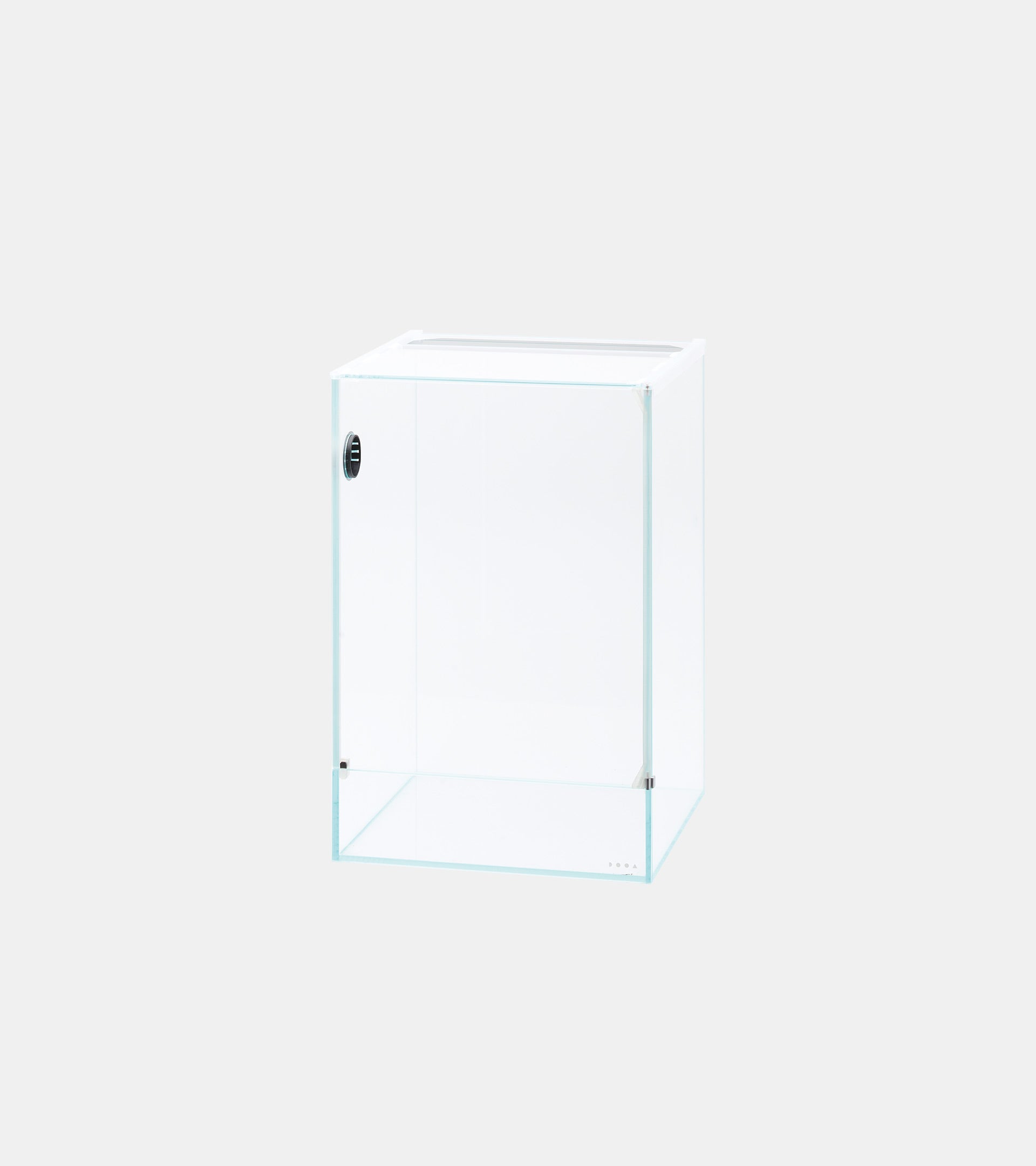 Neo Glass Paluda is a paludarium tank designed to grow tropical rainforest plants in a minimal way. The tank is easy to work with because the top front glass panel slides open and the front glass can be fully opened; the 30cm model comes with a single swing door. The air circulation of the tank, intake and outtake of air, can be easily controlled by installing the Circulation fan 40 (sold separately)  to the fan mounting hole located on the side of the tank