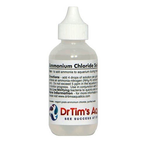 This bottle of reagent grade ammonium chloride is for use when fishless cycling. Concentration is 50mg/L of total ammonia-nitrogen (TAN). Dose 4 drops per gallon of aquarium water.* Use with One and Only Nitrifying Bacteria.