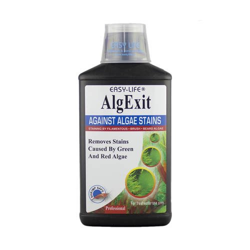 AlgExit is a safe and effective product for combating almost all types of algae in a freshwater aquarium. Algae, such as beard algae, brush algae and filamentous algae, are effectively wiped out. AlgExit is easy and economical to use and harmless to fish, shrimps, molluscs and plants. The algae growth is first brought to a standstill and then it disappears. Any algae spores that are still present in the water are removed.