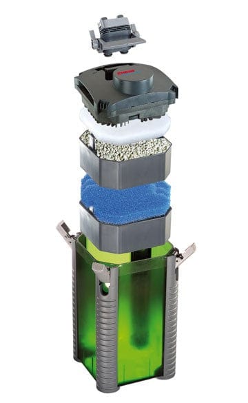 - Accessories included: spray bar, inlet pipe, outlet elbow, EHEIM quality hose, installation accessories