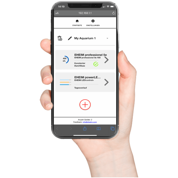 With the integrated Wifi function, it can easily be configured wirelessly via smartphone, tablet or PC/MAC. The individual functions are: constant flow, bio mode, pulse mode and manual mode. In addition, the professionel 5e can be linked with other devices such as with the LED control+ lighting control system.