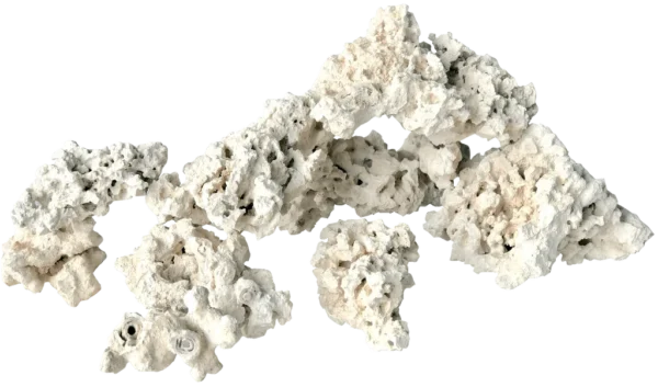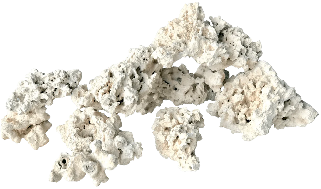 All natural calcium carbonate rock. Never any chemicals, additives. Often, you can spot fossilized ancient corals in the rocks. It comes to you pest and organic free.