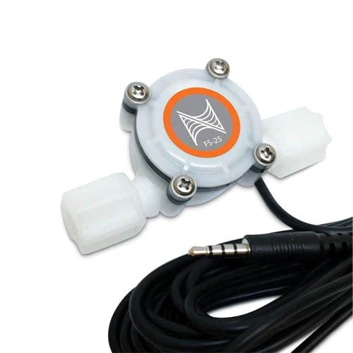 Usually used with aquarium accessories like RODI inputs, calcium reactor feed lines etc., this flow sensor can be placed in line with the flow on 1/4″ tubing, connected to the FMM, and communicate to your Apex the flow rate of water through that pipe. The flow sensor itself uses push-fit connectors to make connecting to your system as simple as possible. The FS-25 will work with flow rates from 3-12 gph.