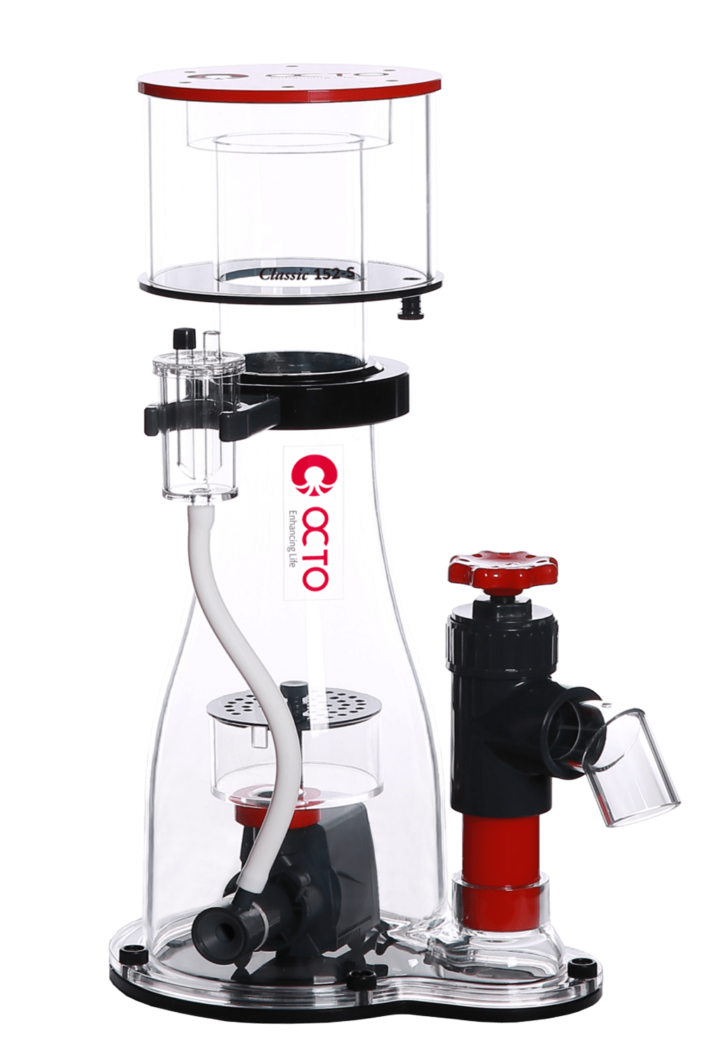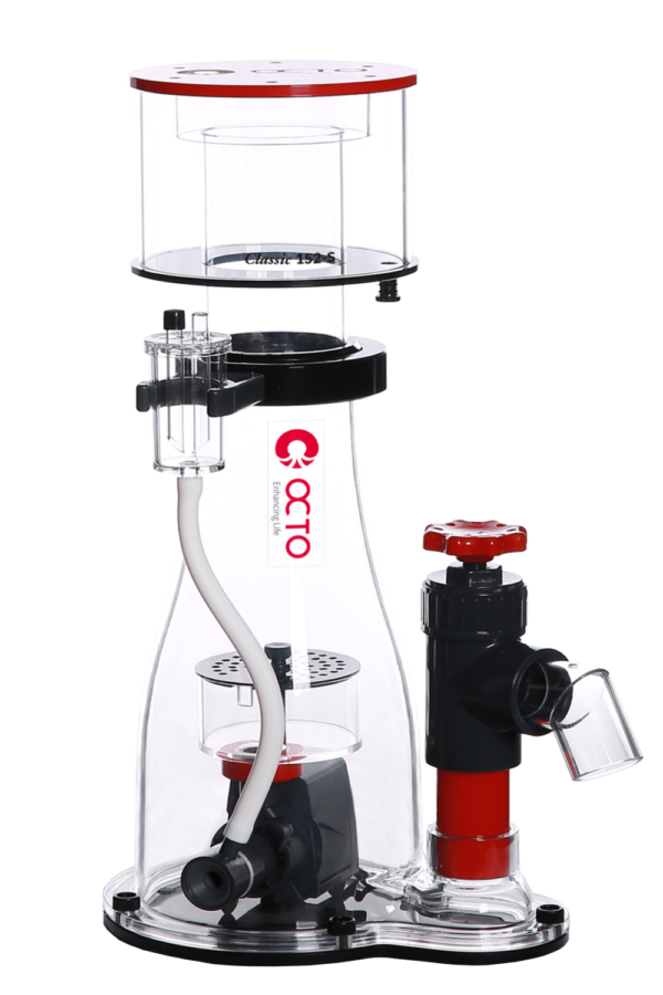 Featuring a small footprint, the OCTO series Classic space saving skimmer (Classic-S) is an in-sump protein skimmer ideal for aquariums with limited sump space. Classic-S further features high-quality cast acrylic body construction, easy disassembly for maintenance and is run by our very own Aquatrance pump. A feed pump is not required as water is drawn directly from the sump.