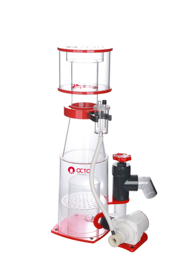 Featuring a small footprint, the OCTO series Regal space saving skimmer (Regal-S) is an in-sump protein skimmer ideal for aquariums with limited sump space. Regal-S further features high-quality cast acrylic body construction, easy disassembly for maintenance, a precision control gate valve and a hybrid conical body which helps to naturally stabilise and concentrate the organic rich foam as it rises.
