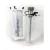 For the aquarist with a system from 40-120 US gallons (150-450 liters) the N18 is the smallest practical use of the ARID reactor embodied in a H.O.T. version. This model stands 16- 3/8” tall, and has a footprint of 6- ½” in diameter; the chamber and lid are produced entirely out of cast acrylic. The H.O.T. bracket is integral to the chamber flange and is adjustable for tank rims with bracing. The central inlet port on the bottom is ½” barb, as is the outlet on the lid. LED power consumption is 12 watts. Optional in-line quick-disconnects are available for the N18 separately. The N18 ships with starter solutions, 125ml of a 5% w/v solution of Nitrate+Molybdenum and 30ml of Iron+Manganese. To contain the blinding light emanating from within the reactor included is a magnetically fastened removable light blocking chamber cover.