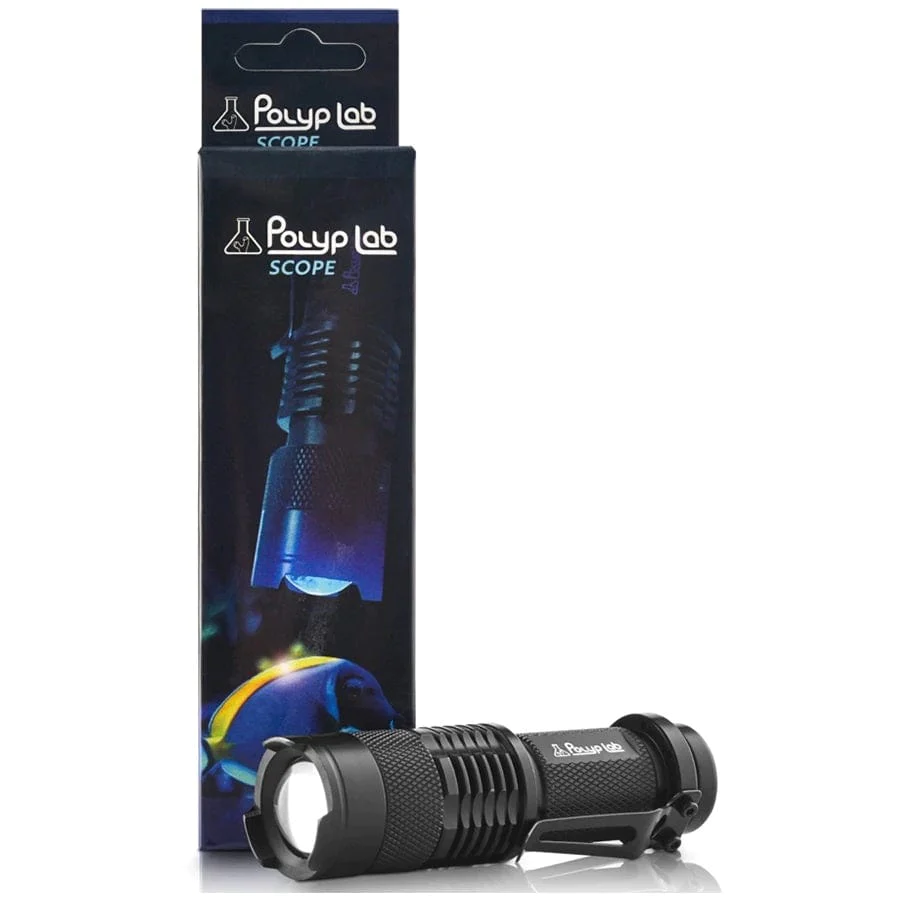 The Scope, not just another flashlight… the polyplab scope. A 420-nanometer blue reef light that is compact enough to fit in your pocket and runs on only one double A battery. Enables you to see the natural bioluminescence of your corals. Specifically designed to watch your corals night feed on reef roids.
