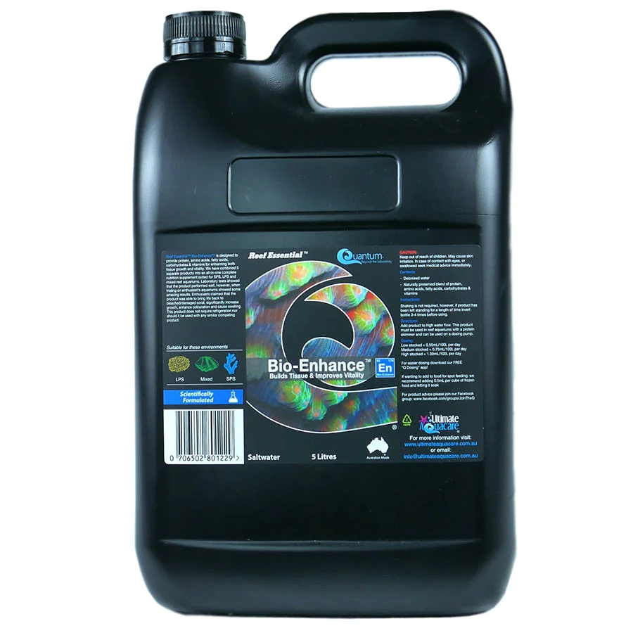 Quantum Reef Essential Bio Enhance is designed to provide protein, amino acids, fatty acids, carbohydrates and vitamins for enhancing both tissue growth and vitality.