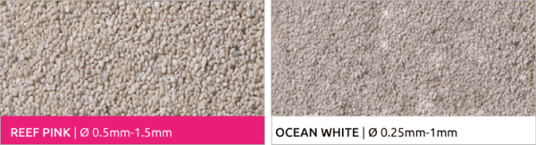 Truly renewable pure calcium carbonate oolitic aragonite sand material formed naturally through precipitation and sedimentation in the Bahamas.