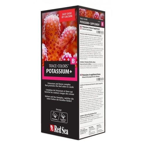 Reef Color B is a complex of Potassium and Boron. Potassium has an essential role in the transportation of coral nutrients within the soft tissue including the nutrients provided by the Zooxanthellae. Potassium and boron have a significant effect on the alkalinity inside the coral soft tissue and play a role in the formation of aragonite in the coral skeleton. Potassium is related to the red chromoproteins.