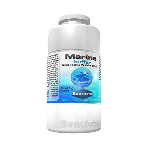 Total Alkalinity is a measurement of three main ions: carbonate, bicarbonate, and borate. In saltwater, bicarbonate drives the pH toward 7.8, carbonate drives pH toward 9.1, and borate toward 9.5 or more. Because of the chemistry of buffering systems, the closer you get the pH to the pK of a buffering system, the harder it is for the pH to shift. So, if you blend a buffer so that the combined product drives the pH toward 8.3, then the more you use, the more stable the pH becomes. That is the principle behind Marine Buffer™. It is a blended buffer that drives and holds your pH at 8.3 because of the blend. The catch to this seemingly simple solution is that most salt mixes contain substantial amounts of bicarbonate salts. This shifts the pK of the buffering system further towards 7.8, and a buffer that shoots for 8.3 will never quite get there. Thus, the pK of Marine Buffer is actually slightly higher than 8.3 in order to combat the influx of bicarbonate at every water change. Marine Buffer™ was the first buffer on the market which contained borate salts (which make a saltwater buffering system much more stable), and Marine Buffer™ remains the most effective pH buffer on the market for marine aquaria.