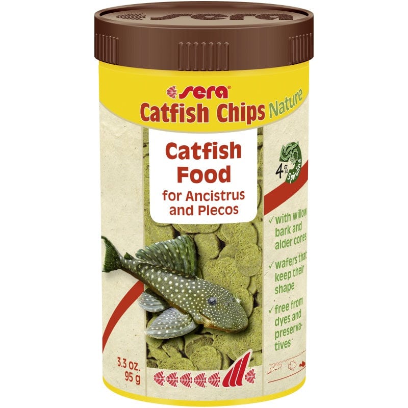 Sera Catfish Chips Nature is the staple food without dyes and preservatives for rasping and suckermouth bottom fish such as Ancistrus and plecos.