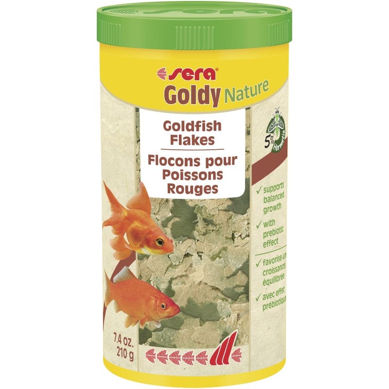 sera Goldy Nature is the staple food for smaller goldfish and their fancy variants such as shubunkin, veiltail or sarasa, as well as other coldwater fish, that does not require dyes and preservatives.