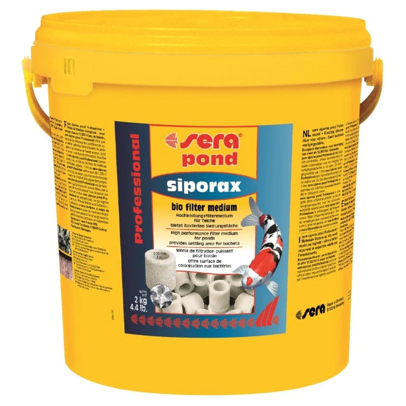 1 liter Sera Siporax pond provides as much settling area for bacteria as, approximately 34 liters (9 US gal.) of clay filter material. Prefilter with sera biofibres coarse to prevent large particles from entering the biofilter.