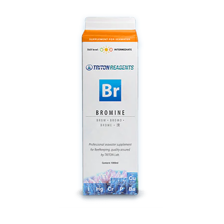 Bromine macro element seawater supplement. Bromine is an important element that naturally occurs in seawater. Beneficial for SPS/LPS coral colour and health.