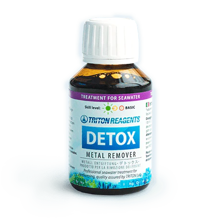 TRITON Detox treatment for removal of excess heavy metals from an aquarium (e.g. Copper and Lead), while causing no damage to inhabitants within the aquarium.