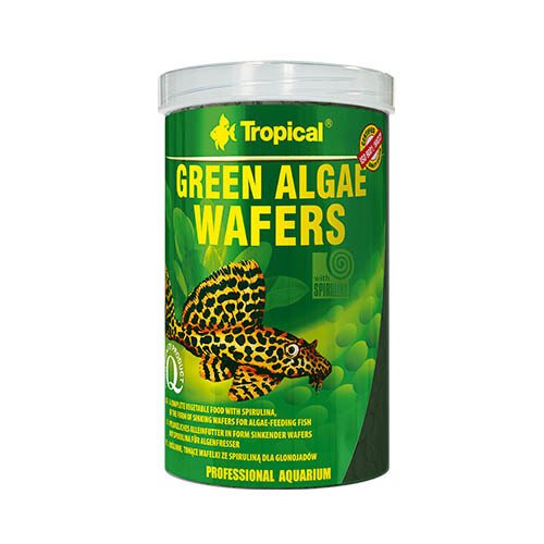 GREEN ALGAE WAFERS vegetable, sinking wafers with spirulina for algae eaters. Vegetable food in the form of sinking wafers with spirulina, intended for everyday feeding of Loricariidae fish with a high dietary demand for plant material and algae such as Sturisoma aureum, Pterygoplichthys pardalis, Panaque maccus etc.